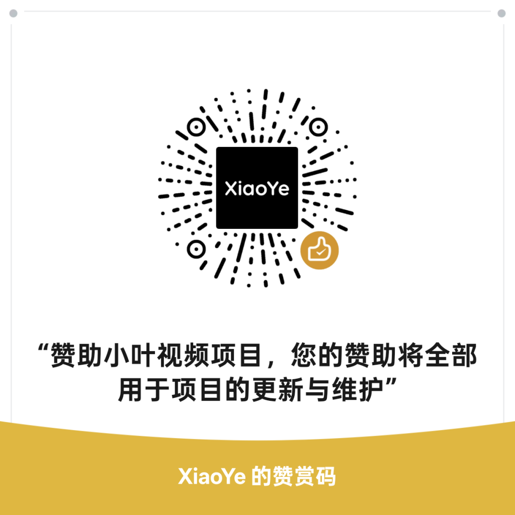 项目本身并不盈利,相关费用由作者用爱发电,因此我们并不承诺项目的永久可用性,后续我们可能采用加入广告的方式分担资金压力,但您仍旧可以通过”赞助”的方式帮助小叶影视项目长久的运营下去.